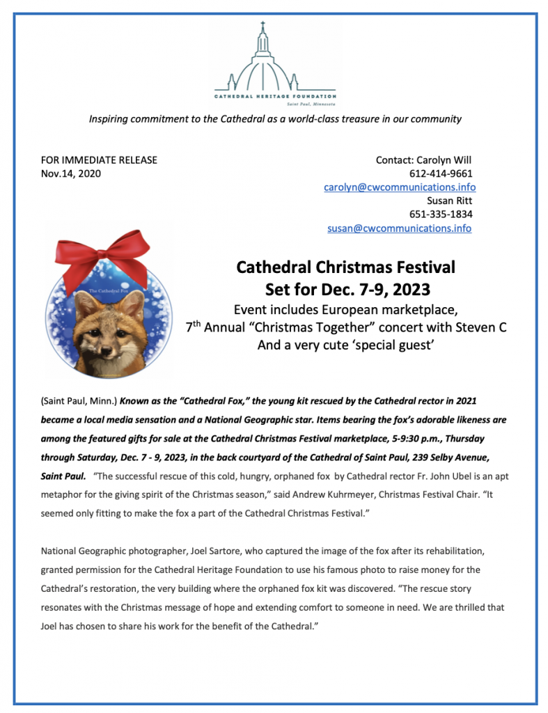 Questions related to the market? Contact: Andrew Kuhrmeyer, CHF Board of Curators, andrewk@cathedralhf.org. Ph. 651-271-2426