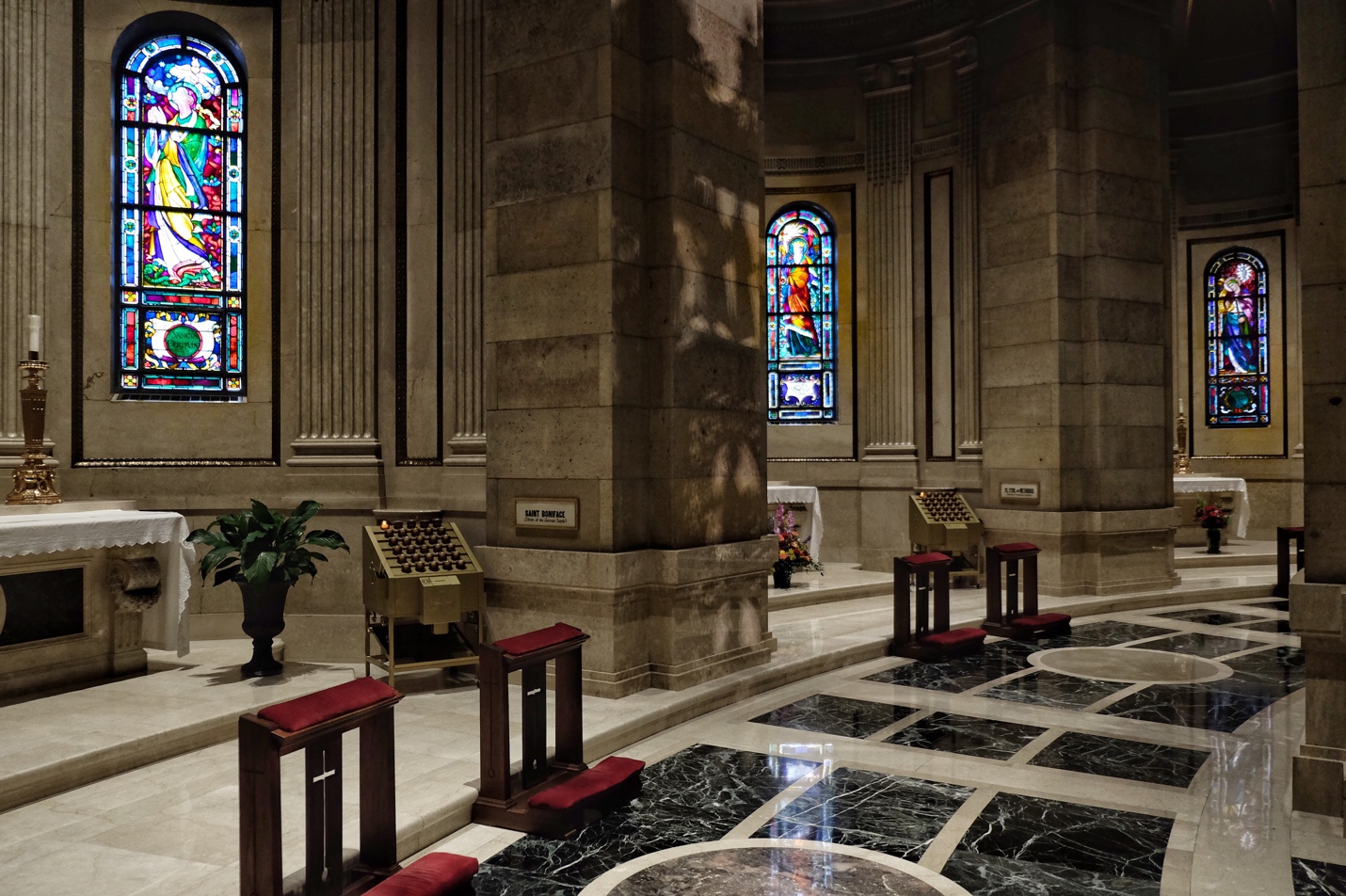 Photo 1: A semi-circular ambulatory behind Cathedral Sanctuary connects the six unique chapels in the Shrines of Nations.