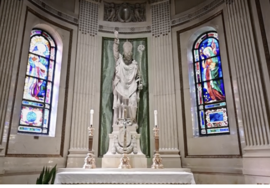 | And now for a question related to the upcoming celebration on March 17th! Question: Where can you touch a piece of Ireland in the Cathedral? Answer: St. Patrick’s Chapel in the Shrines of Nations People often visit this shrine on Saint Patrick’s Day. Visitors keep the vigil candles lit all day, and sometimes they leave a green carnation on the table. You can also touch the Connemara marble imported from Ireland to adorn the chapel wall and floor in front of the chapel. Archbishop Ireland wanted his fellow Irish immigrants as well as all the immigrants to have a taste of home in these chapels. Each chapel features stone from the native homeland of its designated patron saint. |