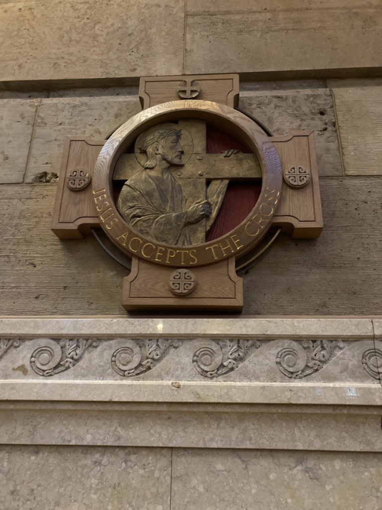 In 1956, Capecchi designed and sculpted in clay the 14 Stations of the Cross, and then cast these in bronze with oak features. The 14 stations are located around the perimeter of the main seating area of the Cathedral.