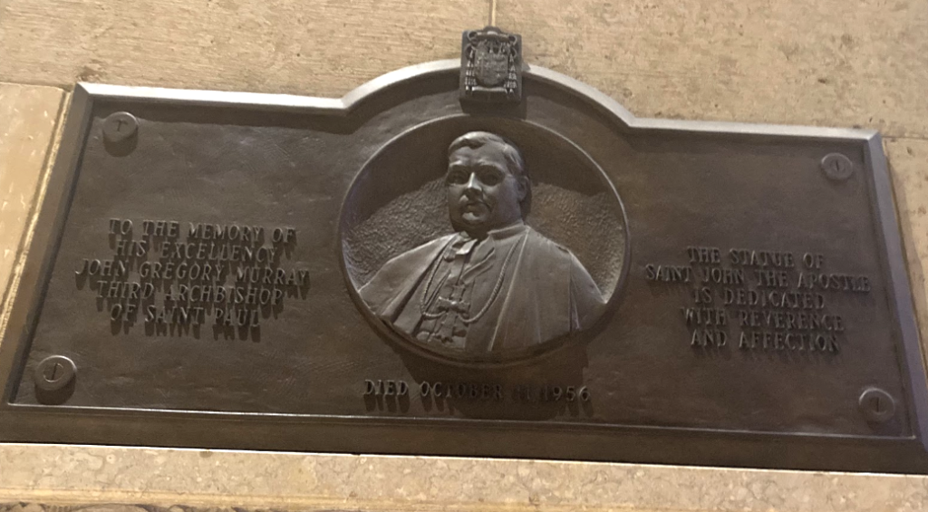 1956, Capecchi designed the bronze plaques honoring Bishop John Murray, and another one to commemorate the 1936 visit from Cardinal Pacelli (Pope Pius XII). both can be found near the north entrance to the Shrines of Nations.